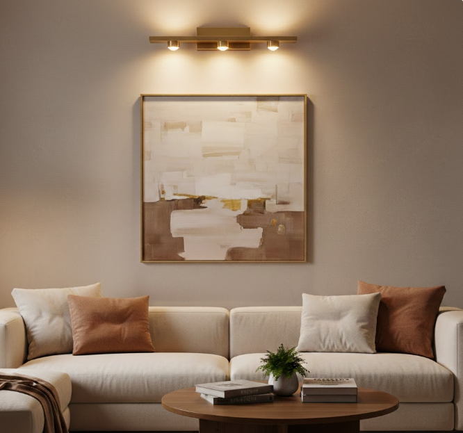 Üst segment bir görünüm sunan pirinç kaplama yüzey, sadece görsel bir şıklık değil, aynı zamanda korozyona karşı üstün bir dayanıklılık sağlar. Üçlü ışık odağı, ışığı eşit ve yumuşak bir şekilde dağıtarak tablolarınızın renklerini en doğal haliyle ortaya çıkarır. 3000K sıcak beyaz ışık tonu, yaşam alanlarınızda gözü yormayan, dingin ve lüks bir atmosfer yaratır.
