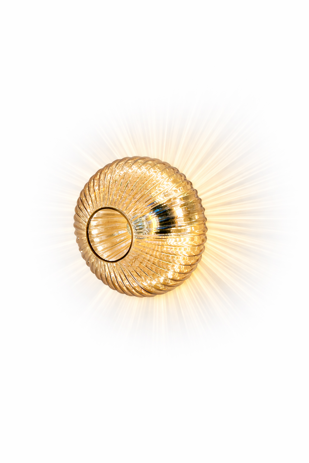 Tasarımıyla fark yaratan Halo Bal Aplik, yaşam alanlarınıza sadece ışık değil, büyüleyici bir atmosfer katar. İsmini aldığı "Halo" etkisini, dairesel formundan yayılan çizgisel ışık hüzmeleriyle duvarınıza yansıtır. Bal rengi camın sıcak dokusuyla birleşen bu özel aydınlatma tasarımı, evinizde modern bir güneş yansıması oluşturur.