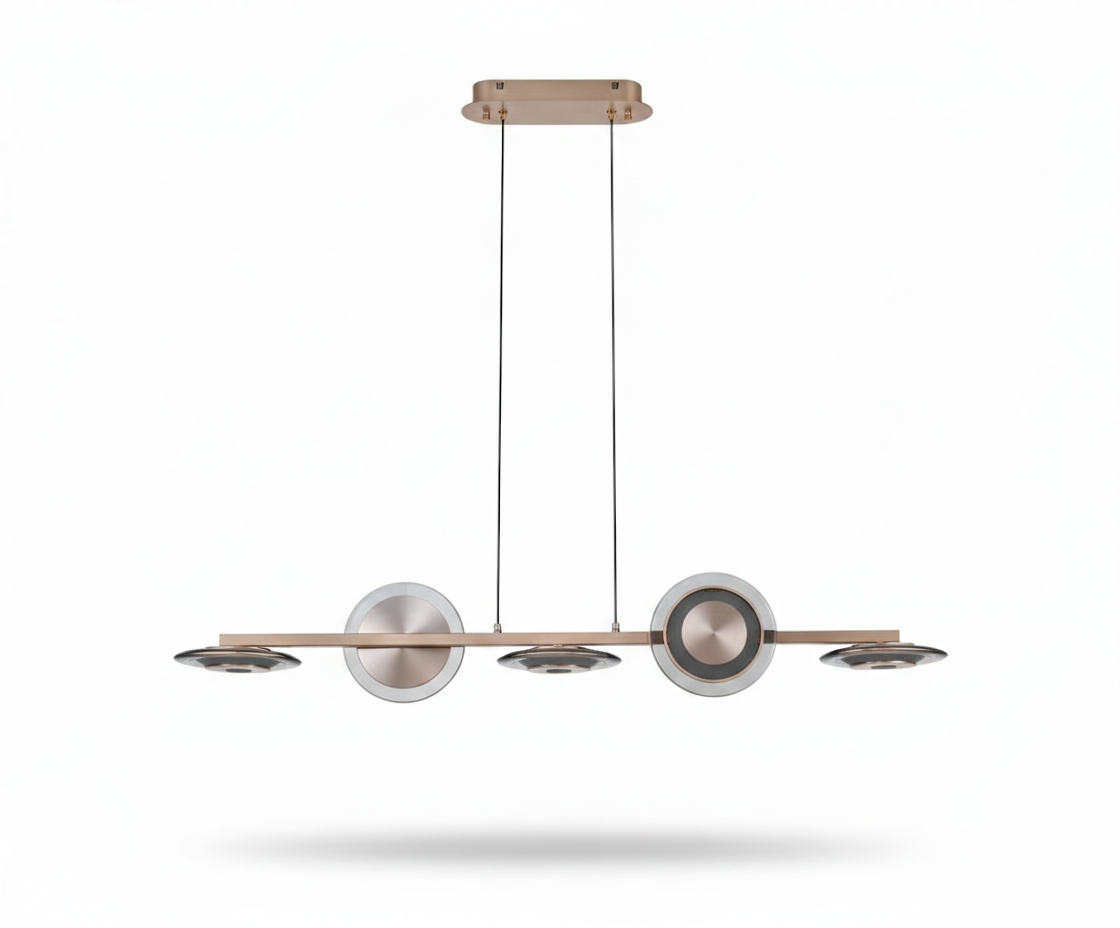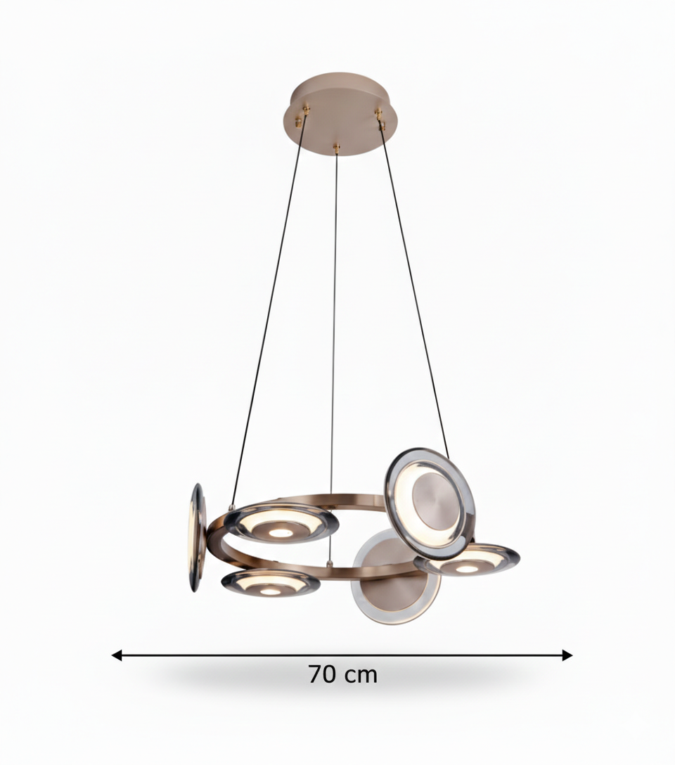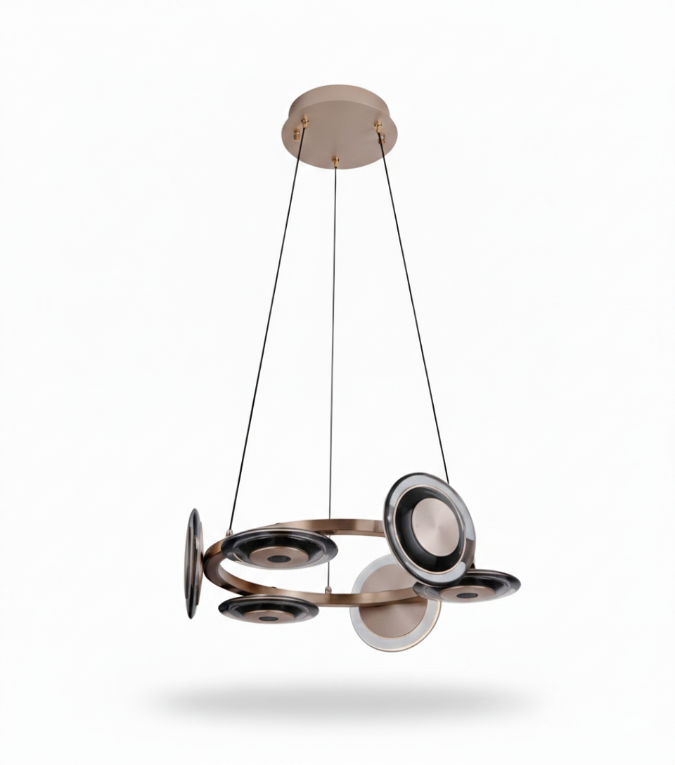 Geometrik halkaların estetik dizilimiyle tasarlanan, geniş mekanlar için ikonik bir parça.