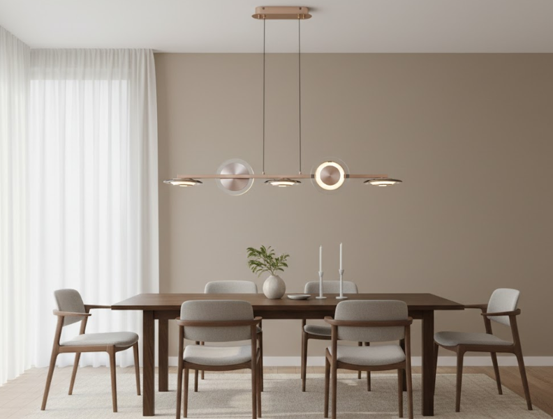 Yemek masaları ve mutfak için özel olarak tasarlanan bu model, modern hatları ve güçlü aydınlatmasıyla mekanın havasını değiştirir.